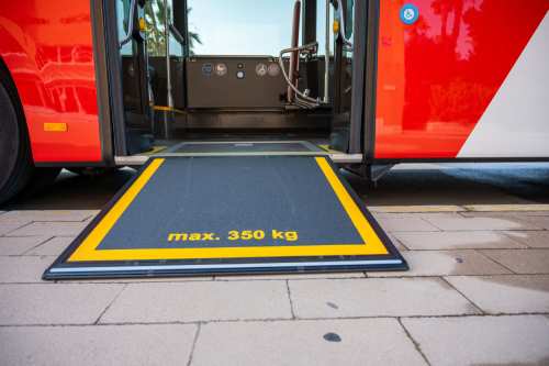 Los autobuses cuentan con rampa eléctrica con banda de LED integrada y en la plataforma frente a la puerta central se instalan dos espacios para silla de ruedas con pavimento Safebus en azul y símbolos silla de ruedas + carrito de compra, en blanco, además de asientos reservados a Personas con Movilidad Reducida (PMR) con tapicería diferenciada.