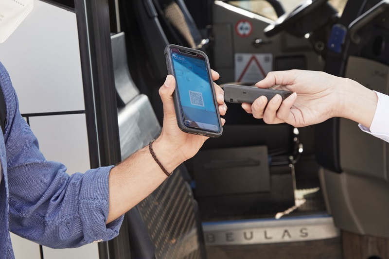 Al subir al autobús, el viajero sólo tiene que validar el billete escaneando el código QR del billete en la máquina canceladora del autobús, situada en el acceso del vehículo junto al conductor.