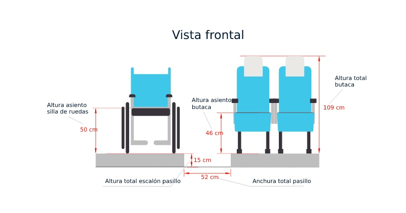 - Der Abstand zum Sitz und der Höhenunterschied zwischen Gang und Sitzebene können je nach Busmodell variieren.