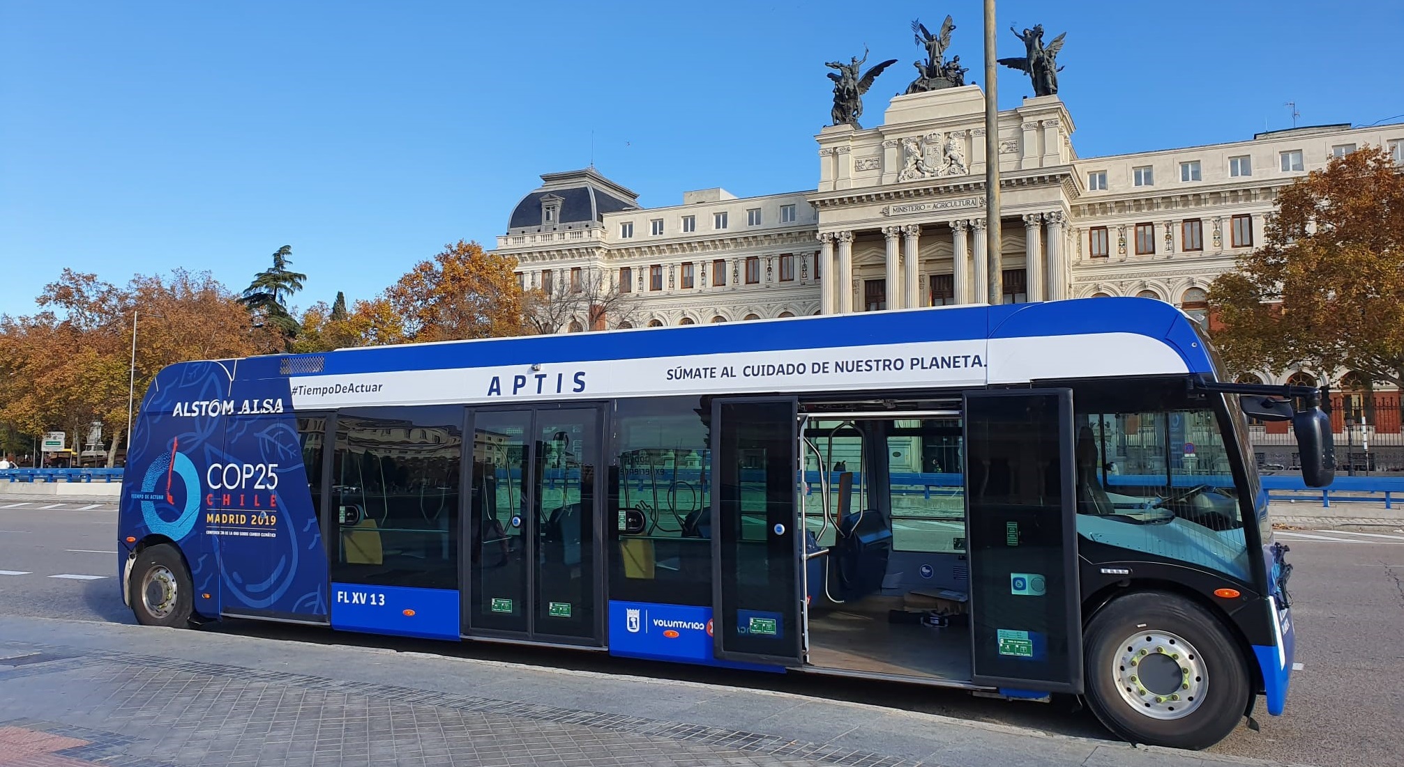 Aptis, el bus eléctrico con el que Alsa participó en la COP25, la cumbre dle clima celebrada en Madrid a principios de diciembre de 2019.