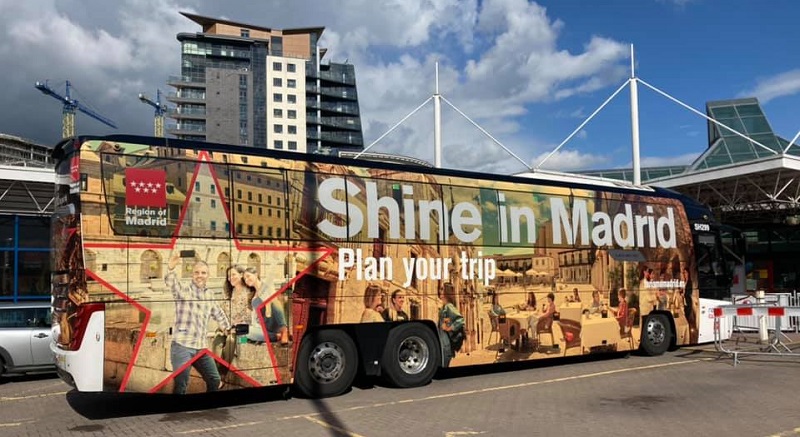 Este proyecto incluye el vinilado –con la imagen de "Shine in Madrid"– de 18 autobuses en las líneas que opera National Express en Reino Unido, en conexiones de los principales aeropuertos (Heathrow, Gatwick, Luton y Stansted) con el centro de Londres; además de la conexión con Bristol, Birmingham y Southampton, Manchester, Brighton, Plymouth, Poole, Swansea y London Victoria.