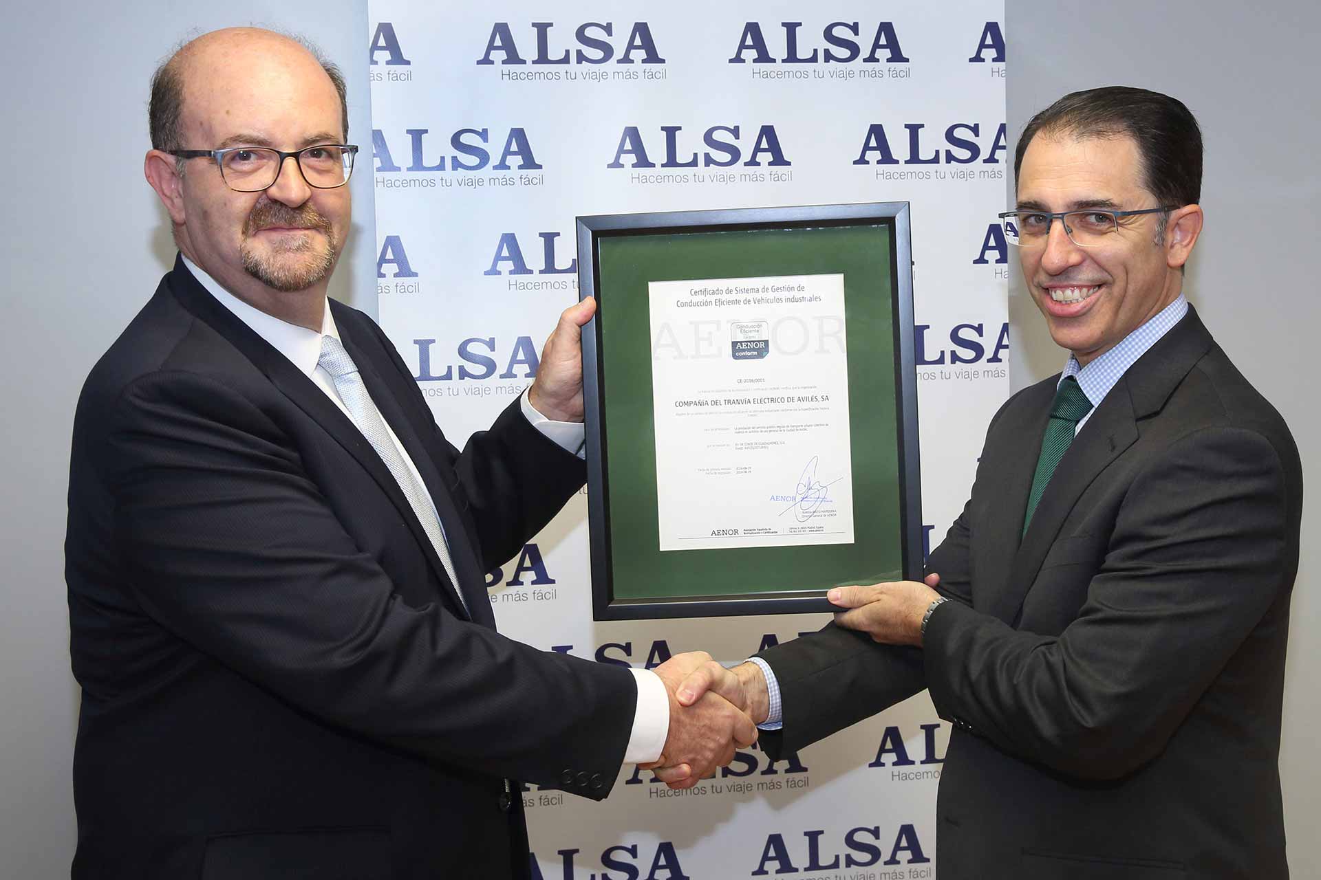 7 de octubre de 2016. La Compañía del Tranvía Eléctrico de Avilés (CTEA), integrada en ALSA y que gestiona el transporte urbano de la ciudad de Avilés y los servicios interurbanos con las comarcas próximas, se ha convertido en la primera empresa española que obtiene el certificado AENOR del Sistema de Gestión de Conducción Eficiente de Vehículos industriales.