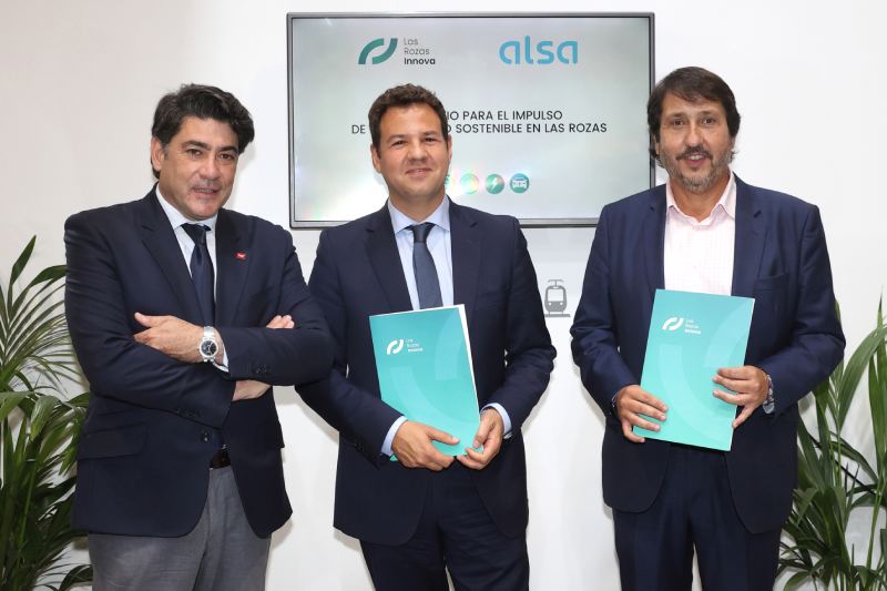 14 de junio de 2022. Las Rozas Innova y Alsa han firmado hoy un acuerdo de colaboración para el desarrollo conjunto de actuaciones en la ciudad que fomenten una movilidad sostenible, multimodal y conectada. El acuerdo, firmado por el presidente de Las Rozas Innova y alcalde de Las Rozas, José de la Uz; y el consejero delegado de Alsa, Francisco Iglesias, se ha llevado a cabo en el stand del Consorcio Regional de Transportes en el Global Mobility Call que se está celebrando en Ifema, en presencia del consejero de Transportes de la Comunidad de Madrid, David Pérez.