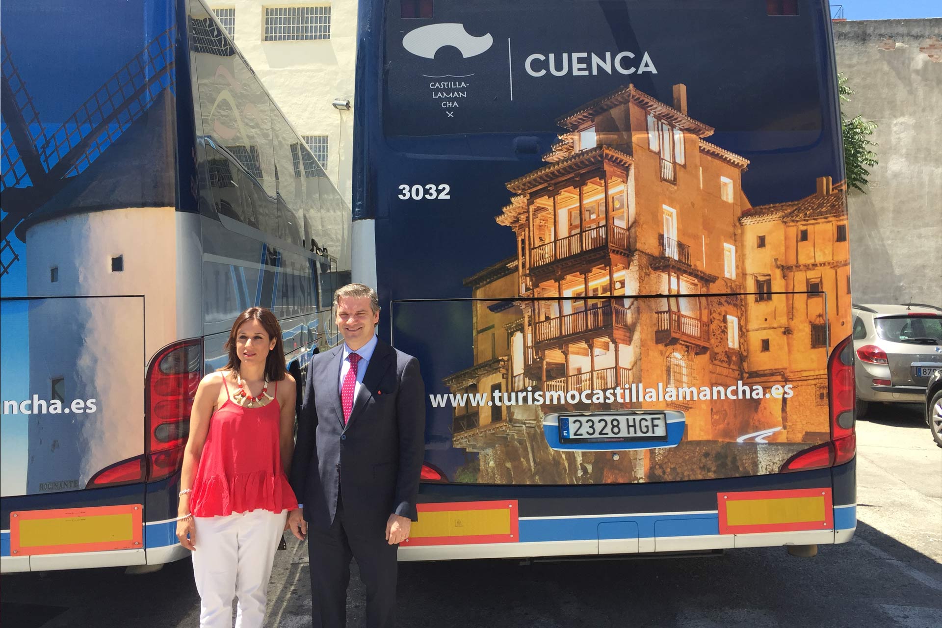 La directora general de Turismo, Comercio y Artesanía, Ana Isabel Fernández Samper, ha rubricado con Víctor López Menéndez, director de la división de transporte de ALSA, un convenio que permitirá que 19 autobuses que cubren las rutas de País Vasco y Cantabria (Bilbao-Santander), Levante (Murcia y Alicante), Cataluña (Barcelona) y Andalucía (Granada) difundan la imagen de espacios naturales de Albacete y Guadalajara, como los Parques Naturales del Río Mundo y del Alto Tajo; del patrimonio, el turismo urbano y las escapadas de interior en Cuenca; la gastronomía y la riqueza monumental de Toledo o la imagen de Cervantes, el Quijote o los molinos de viento, vinculados a Ciudad Real.