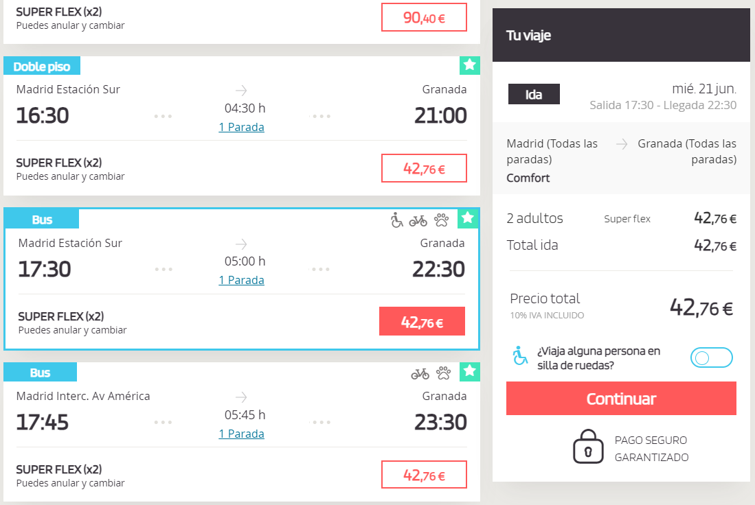 3. Se hai bisogno di un accompagnatore che ti aiuti nel trasferimento dalla sedia a rotelle al posto a sedere o che ti aiuti a salire a bordo se preferisci stivarla in bagagliaio. In questo caso Alsa ti mette a disposizione un biglietto gratuito in modo che tu possa viaggiare con un accompagnatore che ti assista in questa operazione.