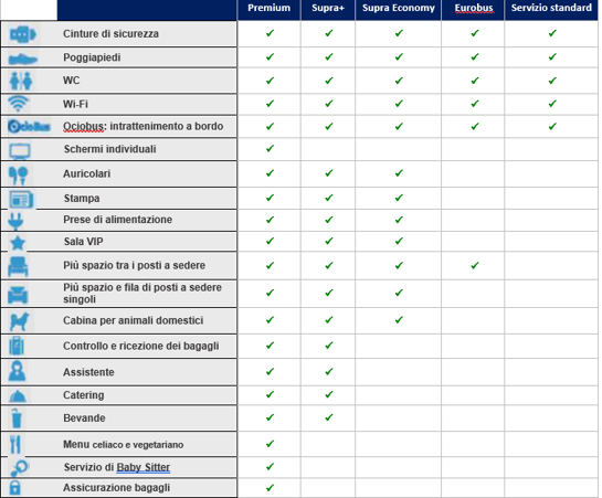 - Supra, se desideri un livello superiore, con servizi premium che includono comfort per viaggiare ancora più rilassato: