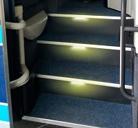 Bordo dei gradini di accesso all’autobus in colore diverso da quello dei materiali circostanti, generalmente giallo o in materiale riflettente.